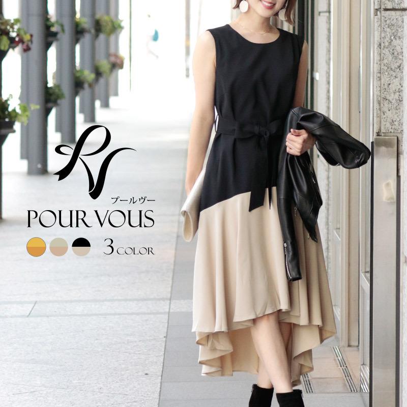 ワンピース ハイウエスト バイカラー ミモレ丈 カジュアル クイックスピードp ポンパレモール